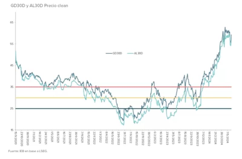 "Seguimos creyendo que, en caso de una normalización de la curva de rendimiento, es decir, una convergencia hacia la de los países con calificación BBB- o CCC+, el mayor potencial de subida está en el GD35 y el GD38. Sólo en caso de un aplanamiento de la curva, los bonos más cortos como el GD30 serían los más atractivos", dijo.
