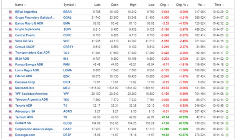 Por el lado de las acciones, también operan a la baja. Las del sector financiero caen entre 3% y 5%. El resto de los papeles bajan entre 0,2% y 2,5%.