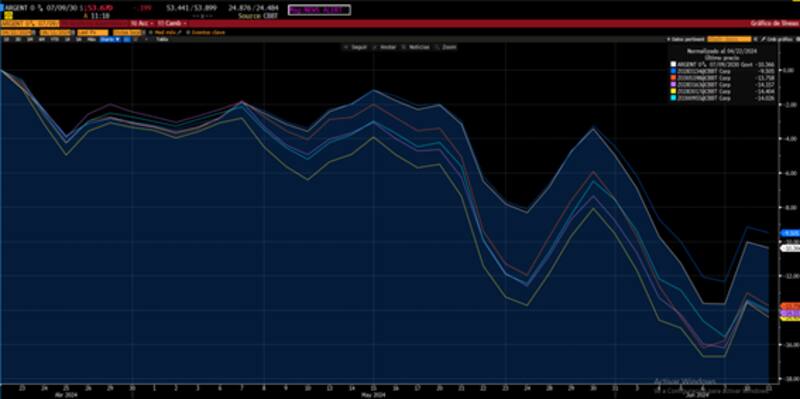 Además, desde Research Mariva agregaron que "si el gobierno logra aliviar las tensiones en el frente político y logra aprobar la Ley de Bases, demostrando gobernabilidad, veremos un alza en los bonos soberanos".