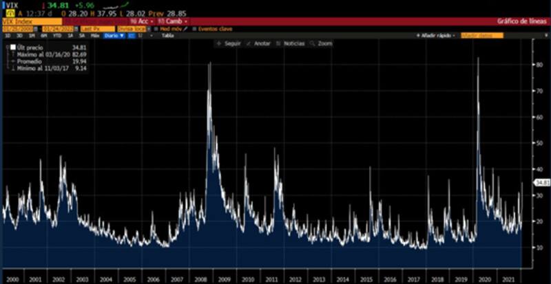 Esto tiene atemorizado al mercado y genera un aumento del nerviosismo y la volatilidad. El índice VIX, de hecho, se ubicó en 35 puntos, tocando su mayor valor desde 2020.