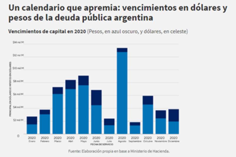 En lo que respecta al calendario de pagos, los analistas de Criteria resaltaron que el 17% del total de la deuda argentina vence en este 2020.