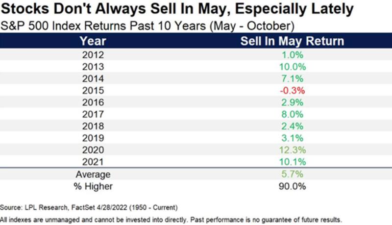 Si se toma históricamente, el semestre de mayo a octubre es de 1,8% de ganancia promedio desde 1950. Sin embargo, en la última década, el rendimiento para las acciones ha sido de 5,7% de ganancia, con el 90% de los años dejando resultados positivos.