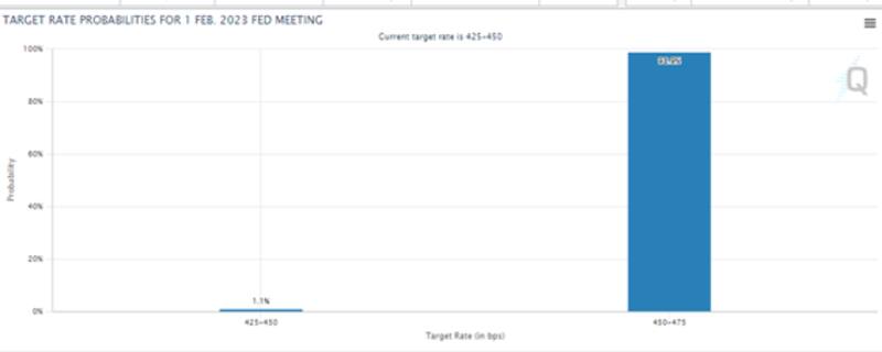 Desde Portfolio Personal Inversiones (PPI), dijeron que el mercado ya descuenta con un 99,9% de probabilidad de ocurrencia que el incremento de tasa de política monetaria que decidirá mañana la Fed al finalizar su reunión de Comité será de 25 pbs.