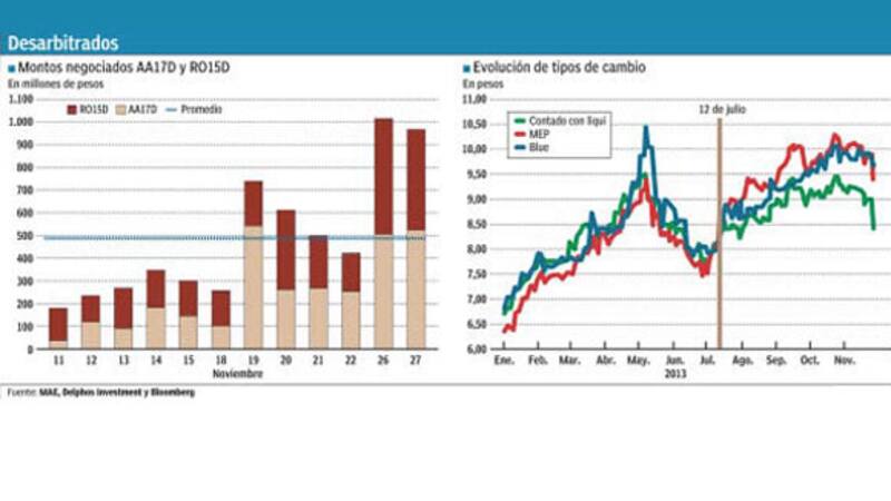 Sin embargo, este escenario es visto para principios de 2014. En el corto plazo, se espera que el gobierno siga bajando el contado con liquidación. Sobre todo a fin de año, cuando la fuerte emisión de pesos hace elevar el blue. Dada la demanda de pesos típica de diciembre, es posible que la presencia del FGS en el mercado baste para mantener calmado el dólar, indicó Delphos. En el corto plazo, espero una agachada más del CCL, coincidieron en la mesa de operaciones de un fondo.