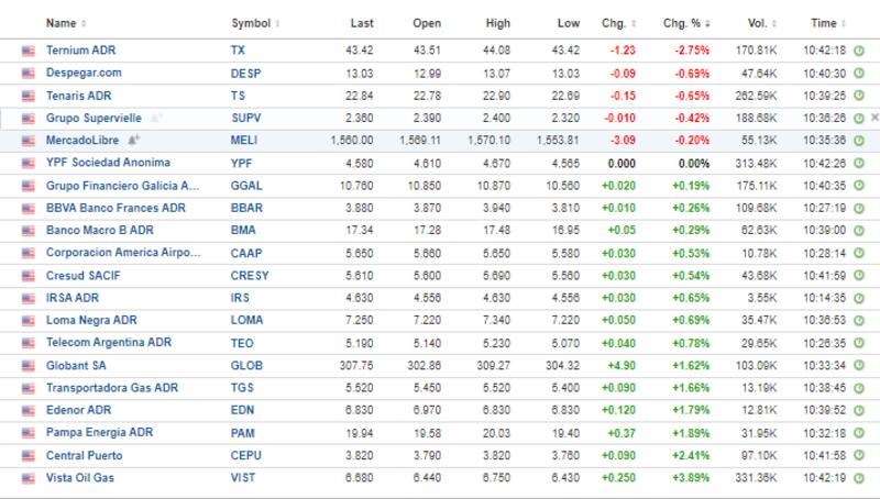 Las acciones operan mixtas, con Ternium y Despegar liderando las bajas de hasta 2,75% mentras que del lado ganador, Vista Oil es la que mas sube, avanzando 3.9%, seguida de Central Puerto y Pampa que ganan 2,4% y 1,9% respectivamente.