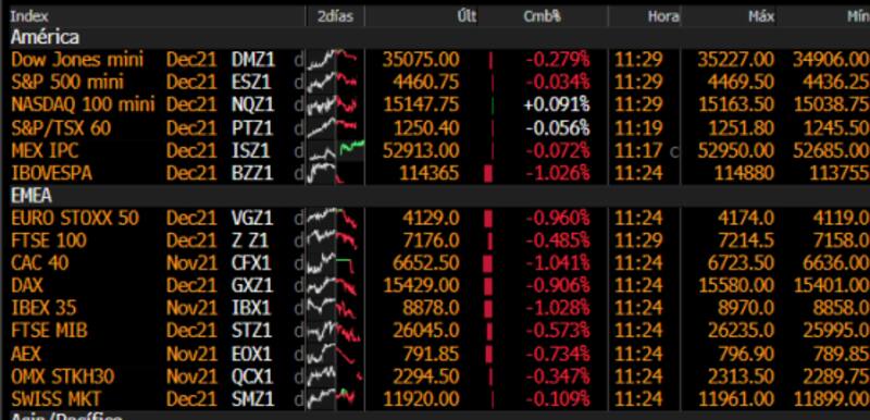A nivel internacional, los índices operan en rojo a comienzo de semana. Tanto el Dow Jones, como el S&P500 operan a la baja el lunes, con pérdidas de 0,27%, 0,03%. En cambio el Nasdaq sube 0,09%.