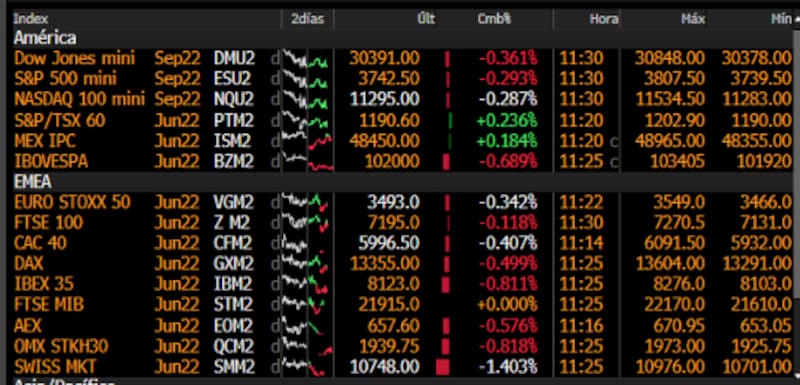 Wall Street no detiene su caída. Tras el desplome que sufrieron los mercados de Estados Unidos durante la jornada de ayer, la tendencia se mantiene este martes mientras el mercado se mantiene expectante a la decisión de tasas de la Reserva Federal (Fed) de esta semana.