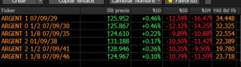 Pese a la leve mejora de este martes, la deuda sigue operando en mínimos históricos. En el último mes, los bonos muestran bajas de 16,5% en el tramo corto y 10% en el tramo largo.