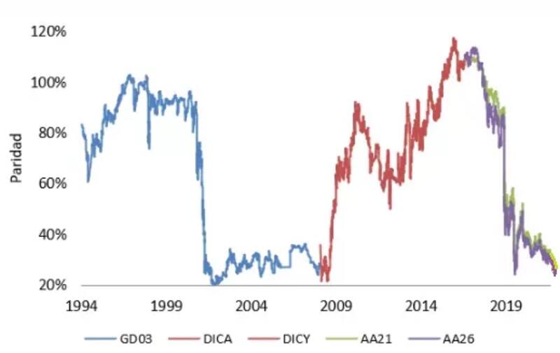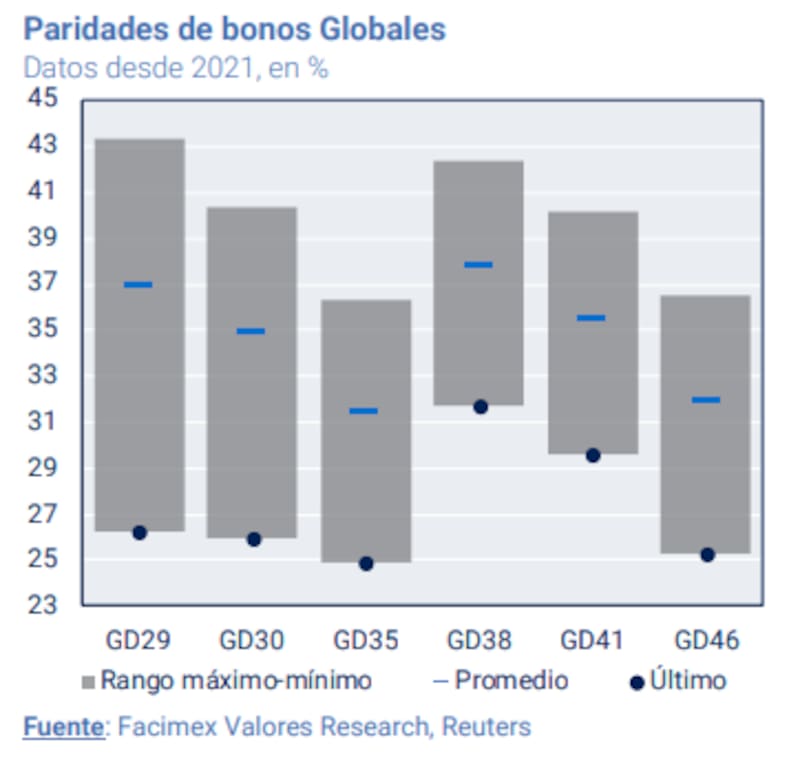 Los bonos operan con paridades de 25% al 26% en el tramo corto y de hasta 29% en el tramo largo.