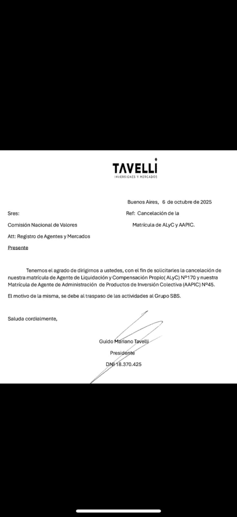 La mencionada empresa financiera comunicó formalmente a la Comisión Nacional de Valores (CNV) la cancelación de sus matrículas como Agente de Liquidación y Compensación Propio (Alyc) y como Agente de Administración de Productos de Inversión Colectiva (AAPIC). Su cartera y operaciones pasaron ahora al Grupo SBS, uno de los brókers más grandes del país, tal como informó El Cronista.