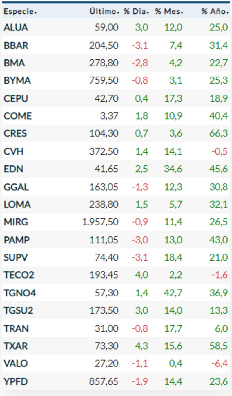 Mientras tanto, las caídas fueron encabezadas por YPF, que cerró con un retroceso de 3,3 por ciento.
