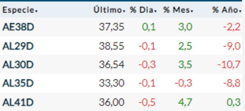 El GD30 avanzó tan solo 0,04% y el GD35 hizo lo propio al incrementarse 0,1 por ciento.