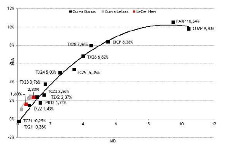 Actualmente, la parte corta de la curva CER rinde -0,25% mientras que en el tramo entre 2022 y 2024 los bonos rinden entre 1,4% y 5% por encima de la inflación.
