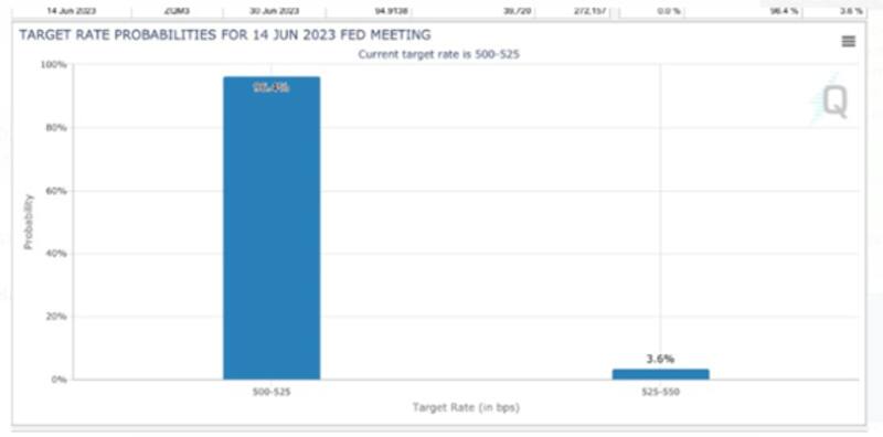 Tras el dato de inflación, la probabilidad de ver una suba de tasa colapsó al 3,6%, versus una probabilidad de que la Fed mantenga la tasa sin cambios en torno al 96,4 por ciento.