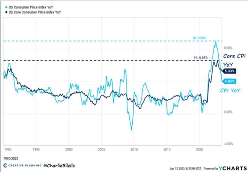 Debido a que la inflación de Estados Unidos se desaceleró en mayo más de lo esperado, esto respalda la idea de que los funcionarios de la Reserva Federal pausarán los aumentos de las tasas de interés esta semana.