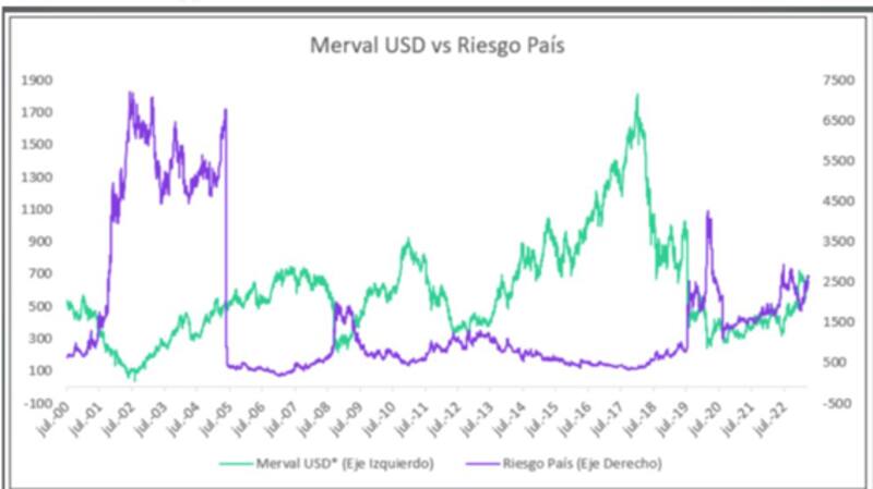 "Históricamente, la relación entre el S&P Merval y el riesgo país era clara. Cuanto mayor era este último, menor era el primero. La relación no era directa pero sí evidente. De hecho, por encima de los 1000 puntos de riesgo país, apenas una única vez había logrado superar los u$s 600", explicaron.