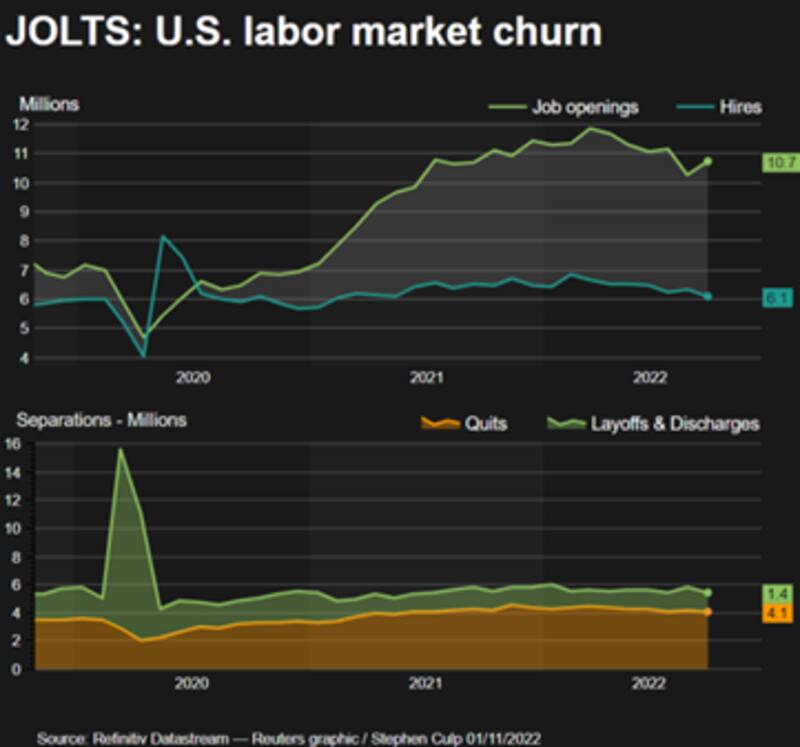 Ayer se supo que las empresas en EE.UU. tenían 10,7 millones de ofertas de trabajo abiertas a fines de septiembre, lo cual representa un aumento de alrededor de medio millón de ofertas laborales respecto del mes de agosto.