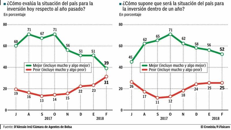Con todo, la caída en la confianza de los ahorristas no afectó tanto a sus miradas para el futuro cercano. Ante la pregunta respecto a cuál creen que será la situación del país para la inversión dentro de un año, el 52% consideró que será mejor y el 25% que será peor. En enero, el 56% de los encuestados habían sido optimistas, mientras que los que tenían una visión pesimista representaban la misma porción del total.
