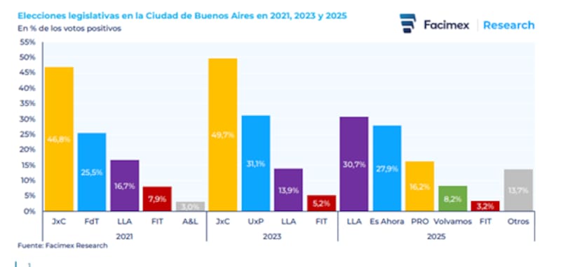 Los analistas de Adcap Grupo Financiero agregaron que el desempeño de Adorni, mejor de lo previsto, subraya el impulso de LLA y sugiere un cambio en el clima político en la capital, lo que deja a LLA en una posición sólida para la contienda por la alcaldía de la ciudad en 2027.