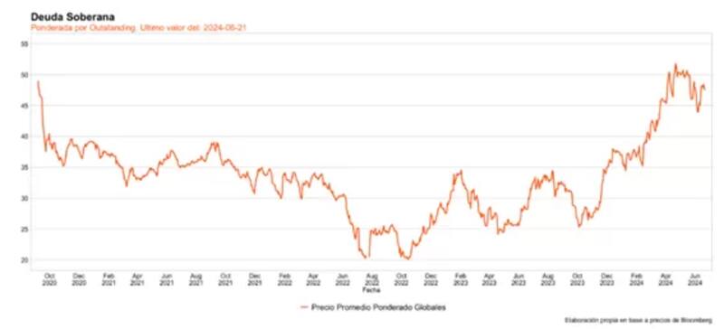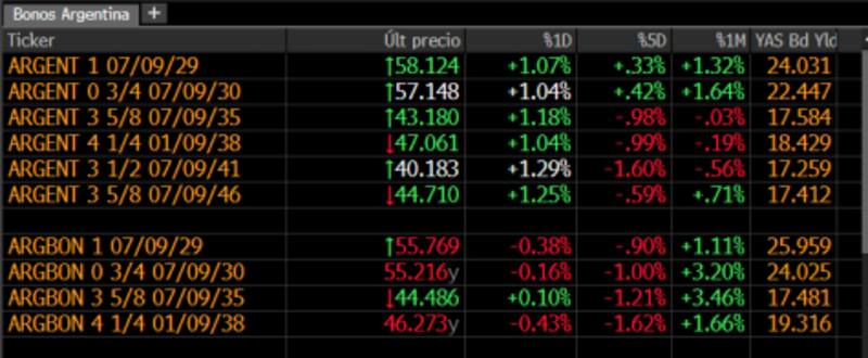 Finalmente, en el extremo más largo de la curva, los bonos avanzan 1,3% y 1,2% en los vencimientos a 2041 y 2046.