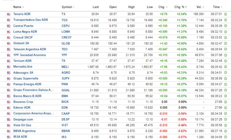 Las mayores subas se ven en Tenaris, TGS, Central Puerto, Loma Negra, Cresud, Globant, Telecom e YPF, con ganancias de entre 0,54% y 2,5%.
