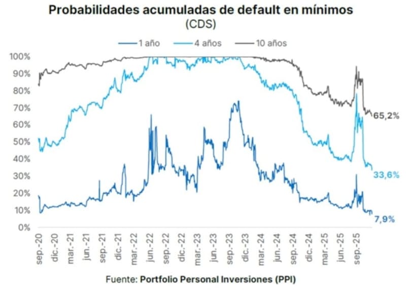 Así, hoy la probabilidad de default de la deuda es la más baja desde que los nuevos bonos salieron a cotizar.