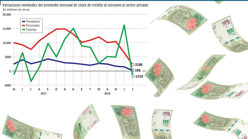 En la comparación interanual, el impacto es todavía más notorio: en julio del 2017 el crecimiento de esta línea había sido de $ 7600 millones.
