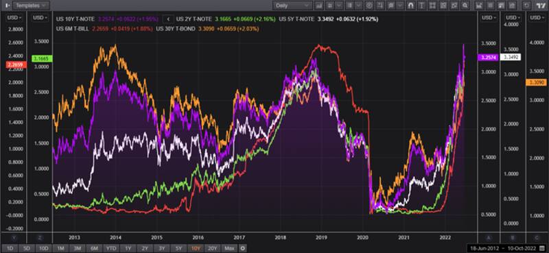 El mercado prevé que la Fed seguirá subiendo la tasa de interés de referencia para combatir a la inflación, por lo que las tasas de los bonos del Tesoro americano se dispararon.
