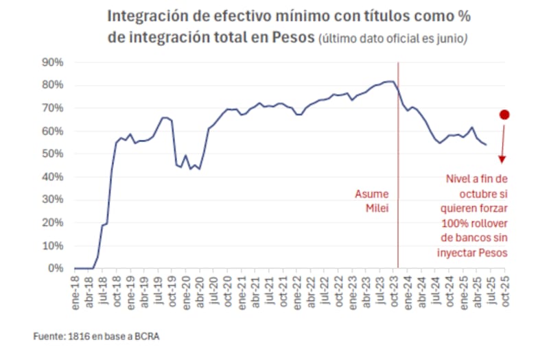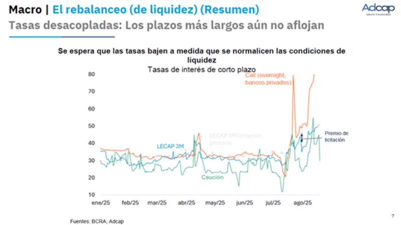 "Justamente el 31 de julio el BCRA publicó la Comunicación "A" 8289, que representó la primera suba de encajes en lo que continúa siendo un apretón monetario con foco en mayores regulaciones para el sector bancario, explicado por la reducida refinanciación de estos agentes desde las Letras Financieras de Liquidez (LEFI) hacia instrumentos del Tesoro", detalló.
