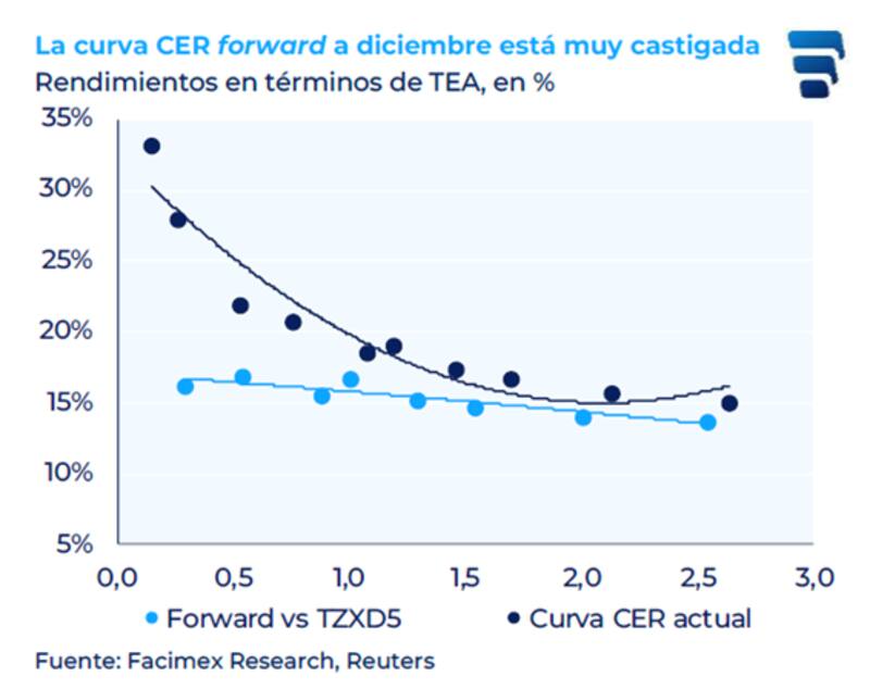 Desde entonces, la curva a tasa fija se desplazó al alza, hoy cotizando en niveles de 4% (TEM), y la curva CER con tasas de 30% de tasa real, siendo estos niveles extremadamente altos y no esperados por los economistas hace un año.
