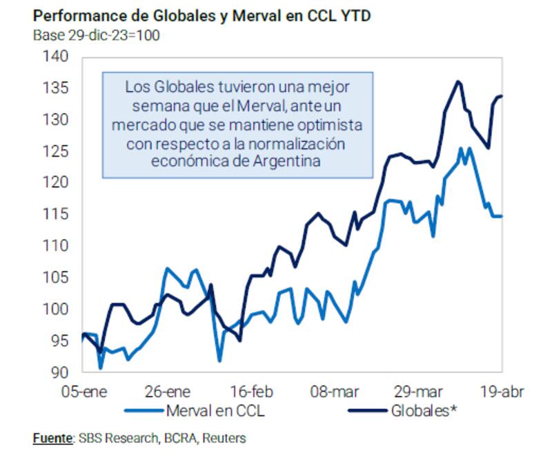 "Los soberanos hard dólar vienen de una semana adversa por el contexto internacional. El mal dato de inflación de EE.UU. modificó las expectativas acerca del próximo recorte de tasas de la FED haciendo pensar que podría requerir más tiempo del previsto. Además, la escalada del conflicto en Medio Oriente añadió algo más de incertidumbre, aunque con un impacto marginal en los mercados", dijeron desde Grupo IEB.