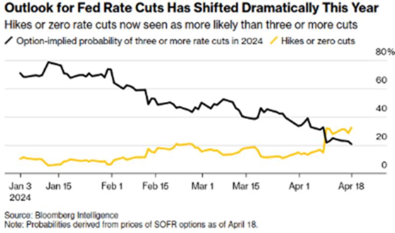 Tras una serie de datos económicos, las chances de ver una baja de tasas colapsaron desde el 80% a comienzo de año al 20% actualmente.