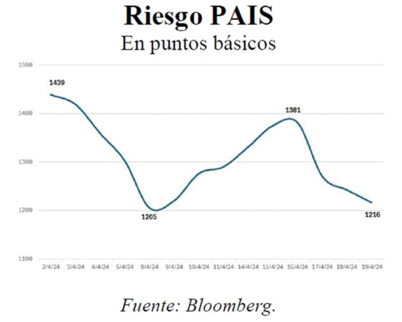 Además, agregaron que "las buenas noticias en el frente externo y fiscal mantienen el optimismo del mercado, que impulsó nuevamente el riesgo PAIS a la baja (1216 puntos) al cierre de la semana".