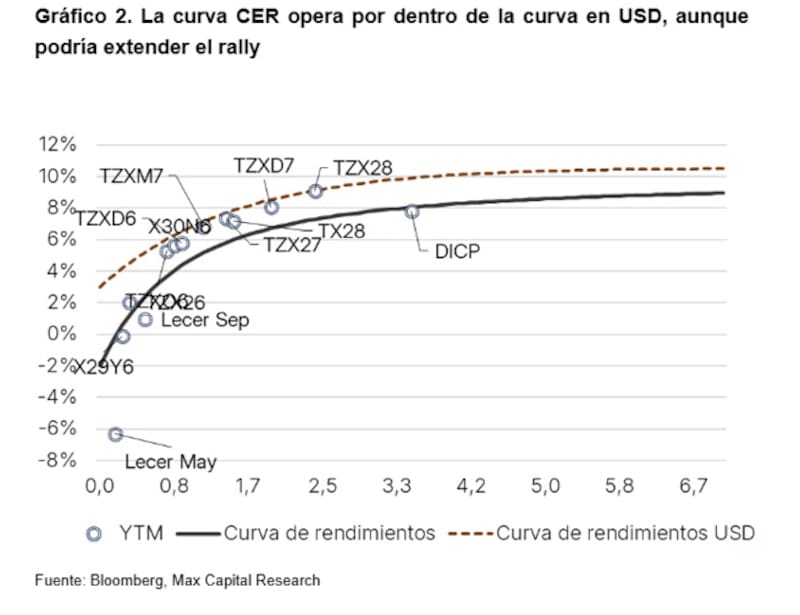 Lo que dejó estas últimas semanas es una curva CER que opera por dentro de la curva en dólares.