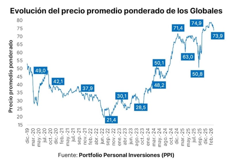 “Teniendo en cuenta la relativa calma observada en el tipo de cambio y su distancia del 14,5% contra el techo de la banda, entendemos que la asimetría se torna favorable para los bonos soberanos hard-dollar. Del mismo modo, también reconocemos que los precios actuales de estos instrumentos reflejan un escenario de mayor risk-off global y el momentum no es positivo”, remarcó Marino.