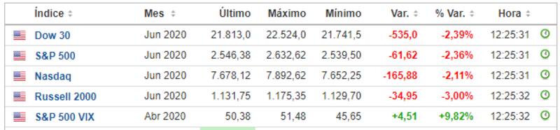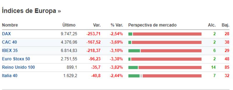 La falta de acuerdo en el consejo europeo para fijar un plan de estímulos que permita luchar de manera conjunta contra el Covid-19 echa más leña al fuego. El Ibex cae un 2,5% hasta el entorno de los 6.900 puntos. Por su parte, el Dax cede un 2%; el Cac, un 3%, y el Ftse 100 pierde casi un 4%.