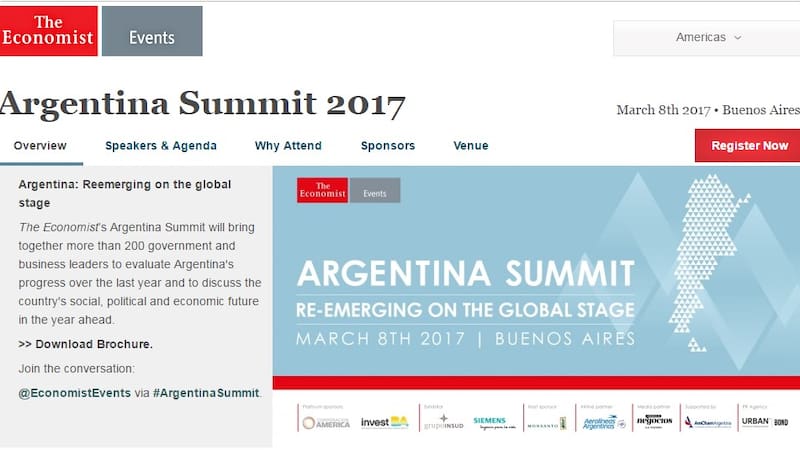 “En noviembre de 2015, Mauricio Macri fue elegido presidente de Argentina, terminando más de una década de kirchnerismo. Desde su inauguración, el presidente ha promulgado un programa de ajustes de política económica: se han suprimido los controles cambiarios, se han reducido los derechos de exportación agrícola y se han desmantelado en gran medida las costosas subvenciones a la energía y al transporte , precisa The Economis en su invitación al evento.
