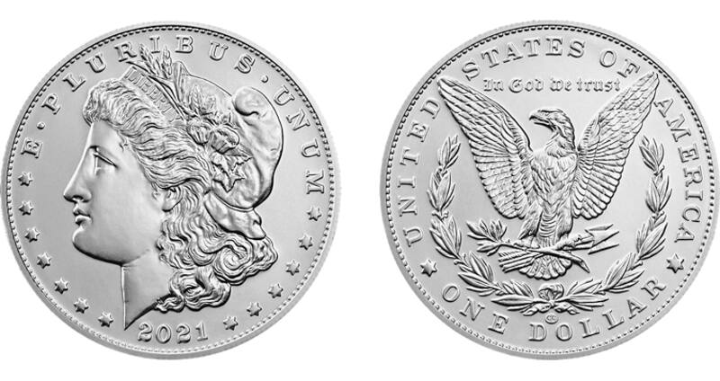 La Casa de la Moneda ofreció el genuino dólar Morgan 2021-CC como parte del reconocimiento por el centenario de la transición de los diseños del dólar Morgan al dólar de la Paz.