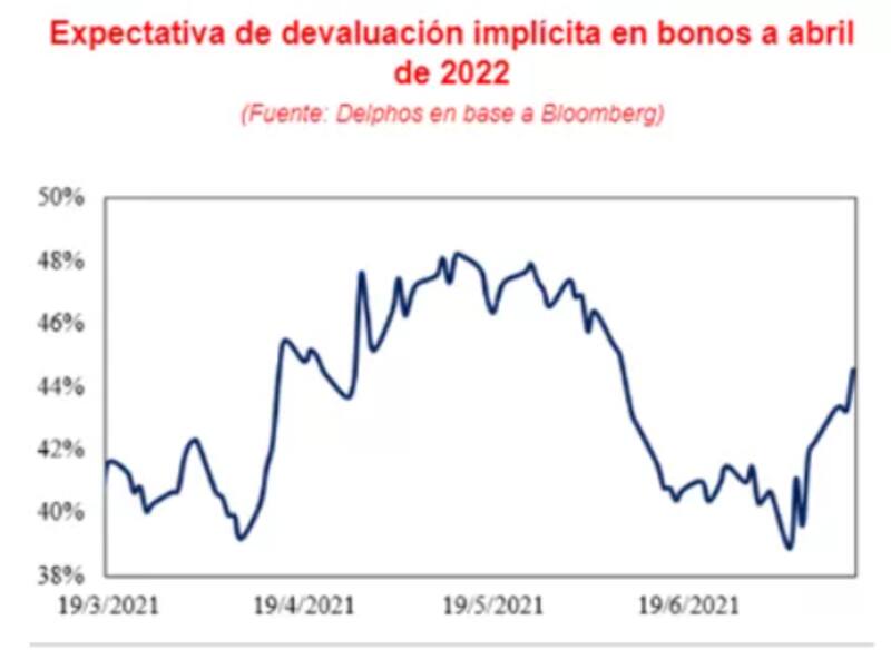 La primera señal se vio en la suba de las expectativas de devaluación en la curva de bonos dólar linked. Hoy se encuentra en torno al 45%, pero hace apenas unas semanas atrás se situaba debajo del 40%.