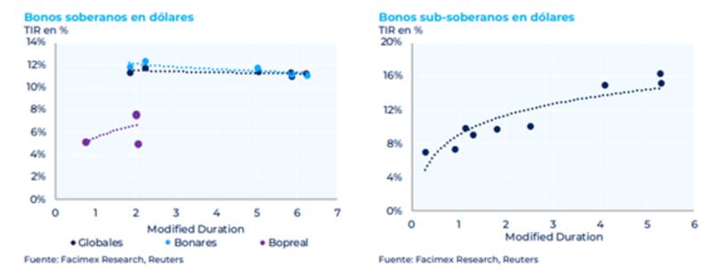 Actualmente, la curva de bonos soberanos en dólares opera plana en niveles de 11,5%.