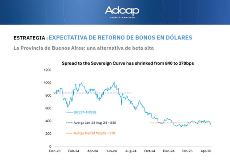 Desde Adcap Grupo Financiero afirmaron que los bonos de Provincia de Buenos Aires 2037 deberían tener una mejor performance que el soberano ante una posible convergencia del riesgo país local a países con riesgo crediticio.