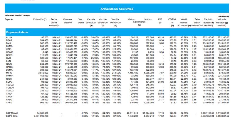 La principal baja de las acciones del Merval la sufrió Ternium, que cedió 5,66 por ciento. Sin embargo, se trata del papel que más creció en lo que va del año: lleva una suba de 181,1% en 2021.