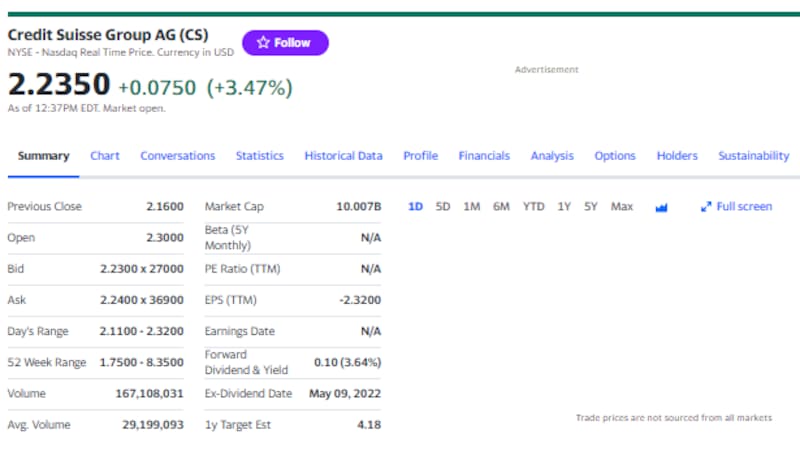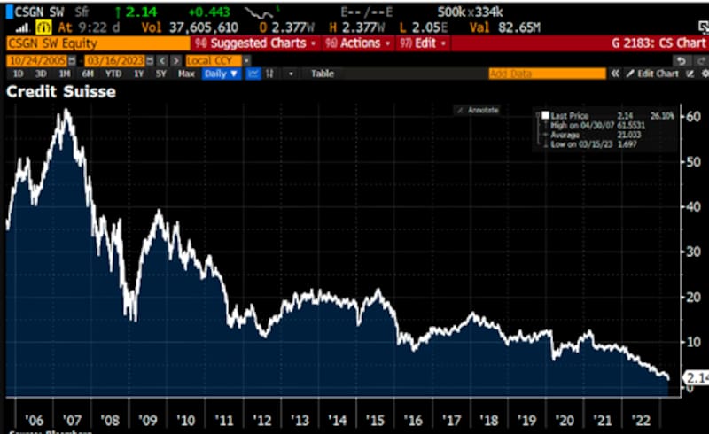 Las acciones del banco se desplomaron hasta un 31% el miércoles en las operaciones de Zurich y 15% en Wall Street.