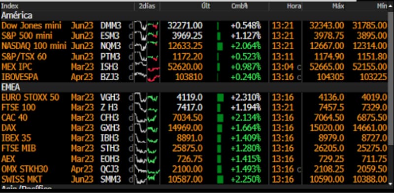 La Bolsa suiza, en medio de la volatilidad de Credit Suisse, también sube 2,25 por ciento.