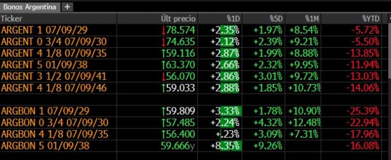 Las subas de hoy viene luego de una fuerte baja intradiaria en el día de ayer que dejó a la deuda local con pérdidas de más del 4%.