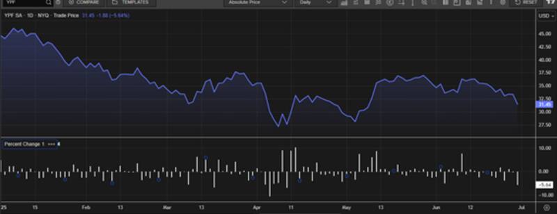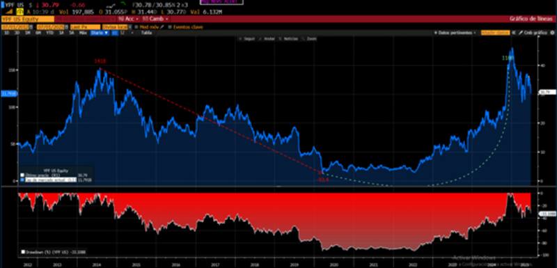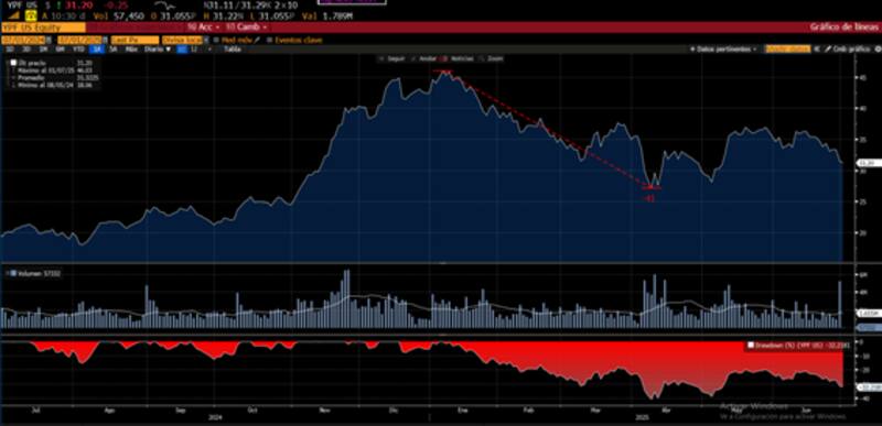 Desde los máximos de comienzo de año, las acciones de YPF acumulan una baja del 32%.