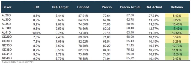 A su vez, para los bonos de mayor plazo, como los títulos a 2041 y 2046, los analistas de Grupo IEB anticipan una suba adicional de entre 9% a 13%.