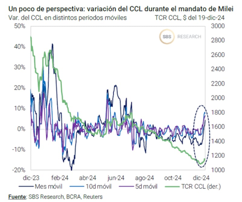 De esta manera, el spread entre el dólar financiero y el oficial volvió a niveles de principios de noviembre y la fuerte suba del tipo de cambio hizo que la volatilidad cambiaria se dispare.