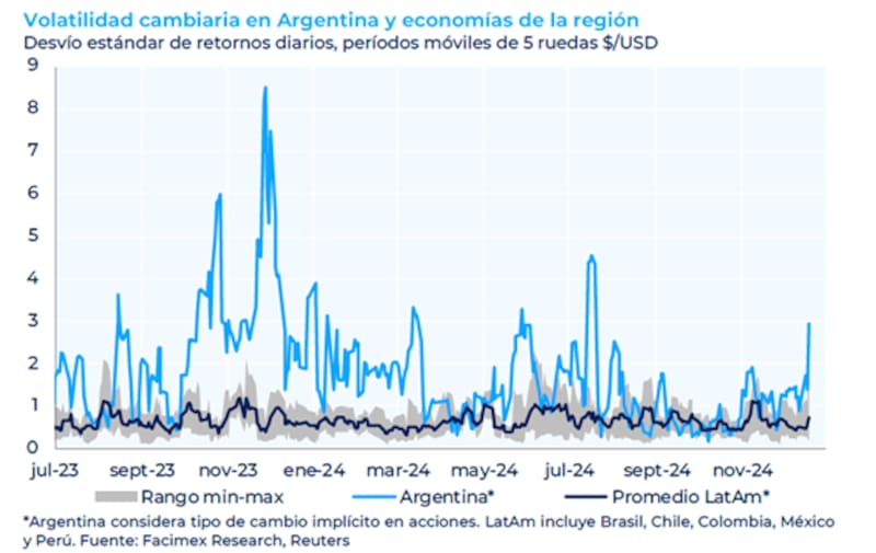 Lo que se puede ver es que dicha volatilidad cambiaria no se dio solo en ámbito local, sino también a nivel regional. Por lo tanto, los factores detrás del rally en el dólar pueden explicarse tanto por cuestiones locales como por factores globales.