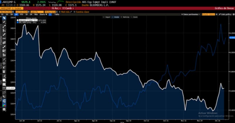 Esto deja a las posiciones en pesos en niveles muy exigentes como para que las inversiones en moneda local sean ganadoras en dólares, es decir, que el carry trade funcione.